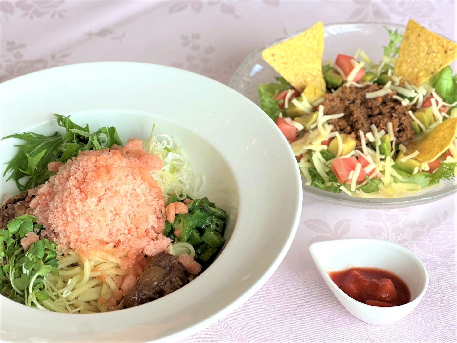 シャリシャリトマトの冷製ソーキそばとミニタコライス 1,980円(税込)