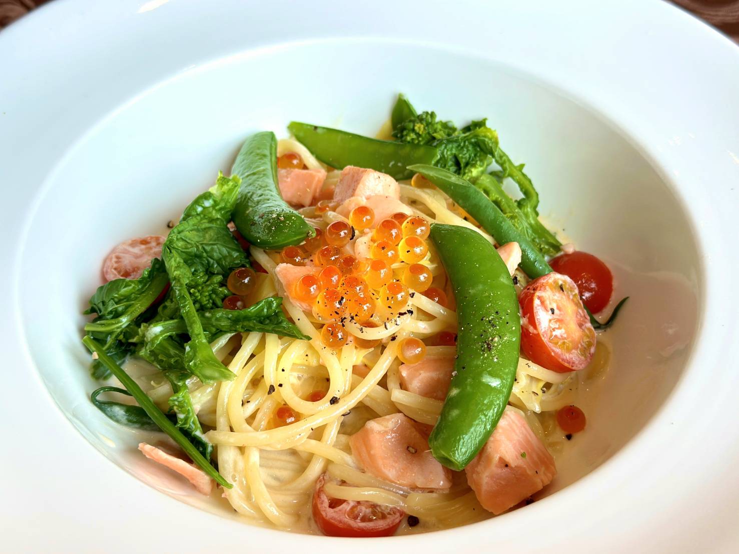 <生パスタ>アトランティックサーモンと春野菜のクリームパスタ  2,090円(税込)