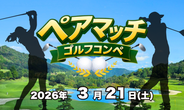 令和8年3月21日(土) 開催 令和8年3月21日(土)【スクランブル方式】ペアマッチゴルフコンペ2026 開催のご案内 2人一組でエントリーしていただき、各組のスコアを競うオープンコンペ!ペアで協力しハイスコアを狙いましょう。 担当からのコメント 2人1組でエントリーしていただき、各組のスコアを競います。ペアで協力し、ハイスコアを狙いましょう!